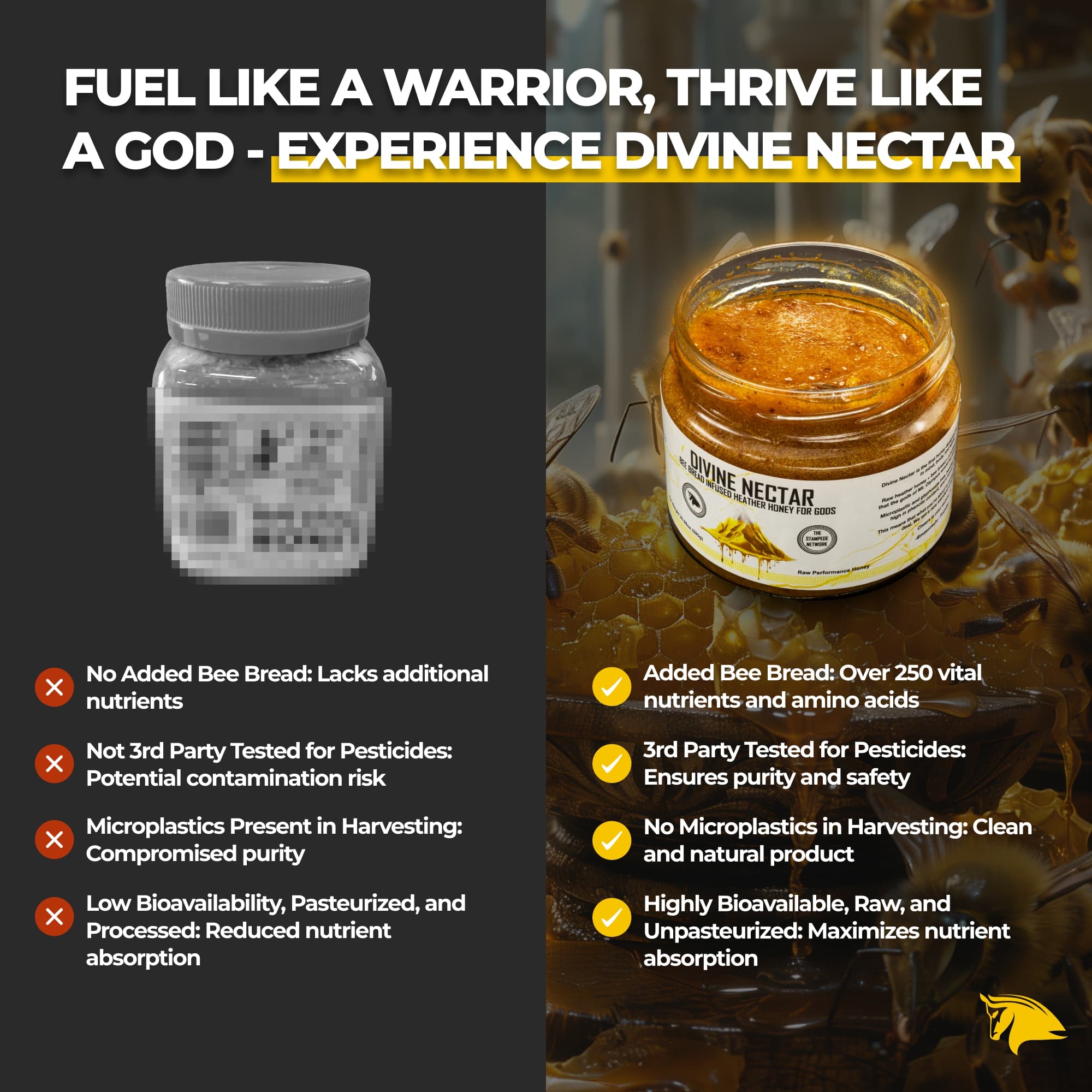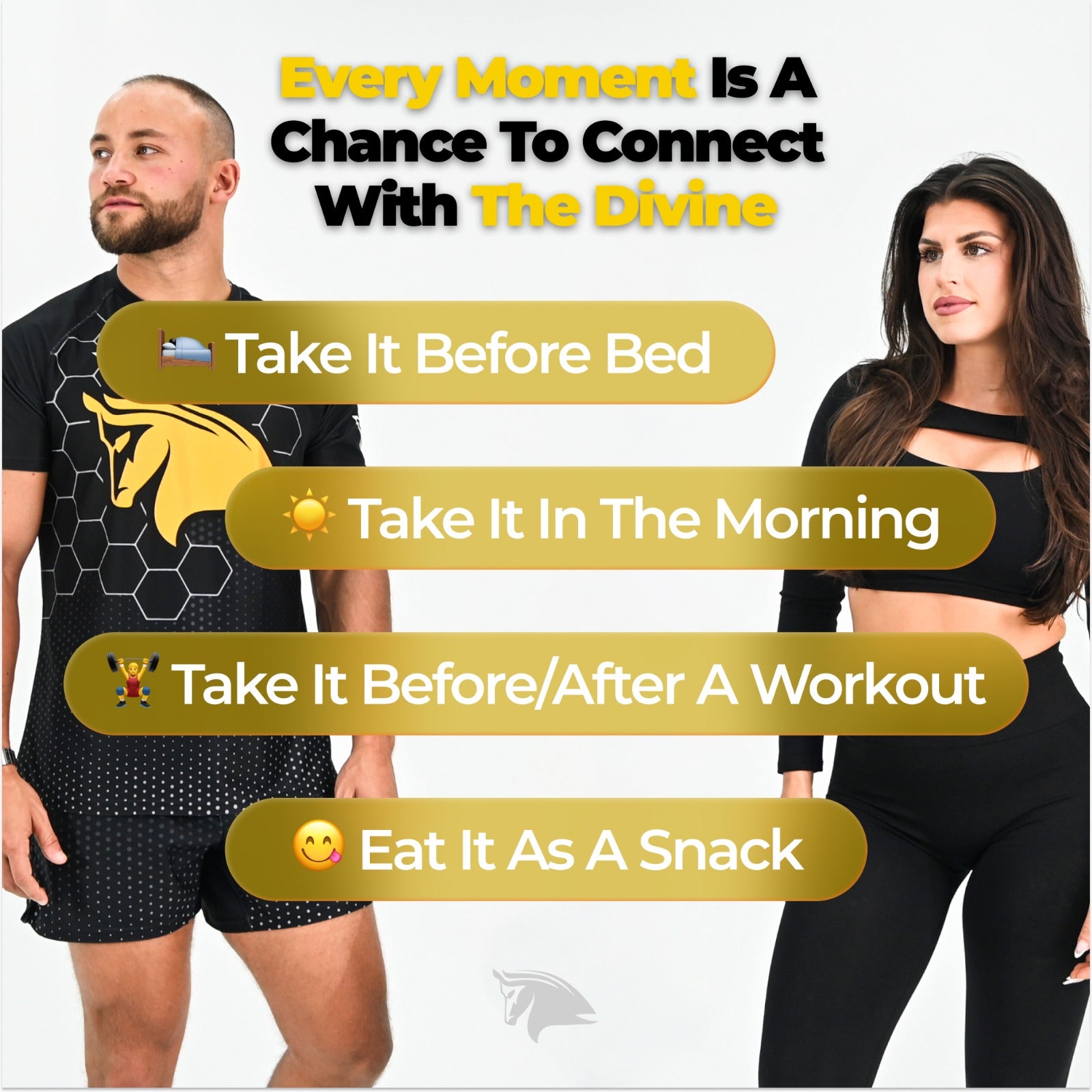 Divine Nectar can be consumed in various ways. Take a spoonful before or after workouts for energy and recovery, use it as a natural sweetener, or enjoy it straight from the jar. For improved sleep, take a spoonful before bed.
